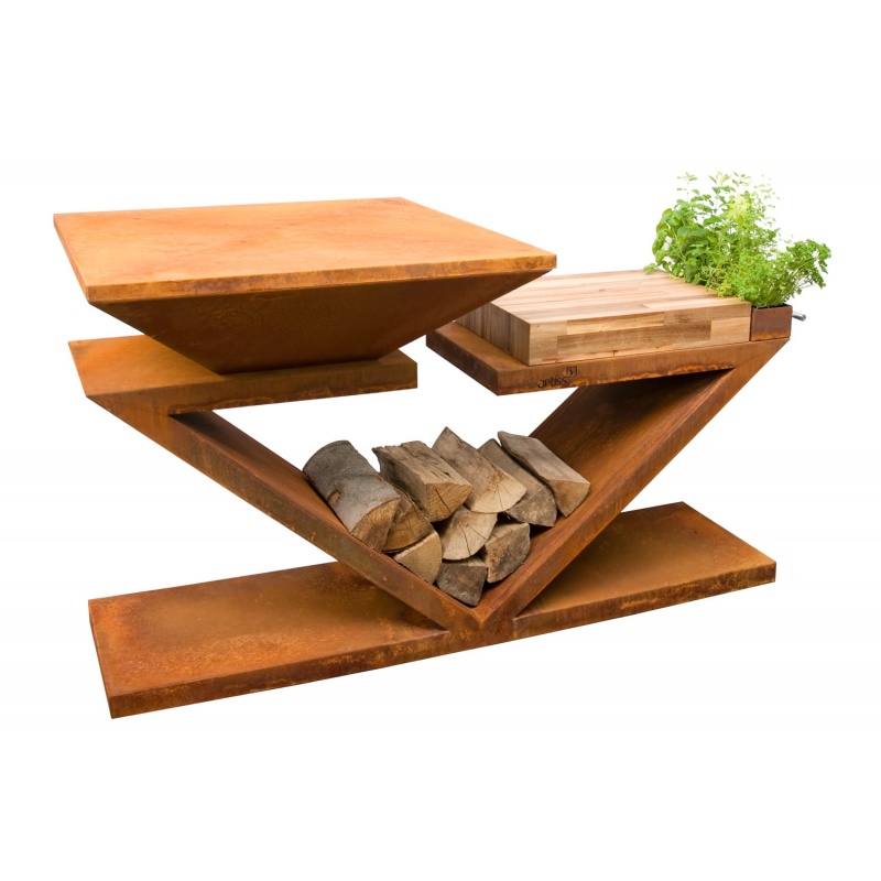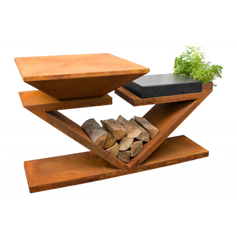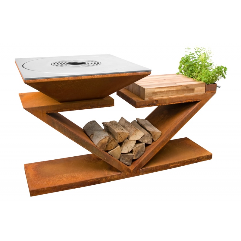 Egyedi és modern kialakítással rendelkezik az Artiss G5-ös modell. Grafit színnel van ellátva. A grillhez jár egy magas minőségű vágódeszka is, amelyen előkészítheti az alapanyagokat ételeihez. A tűztér alatt található talapzat egyben egy hangulatos fa tároló funkciót is betölt.
