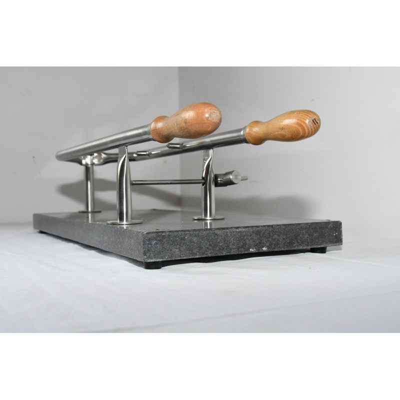 A márvány alap téglalap alakú, méretei 250x550 mm, kővastagsága 30 mm, gumi lökhárítókkal (lábakkal) a jobb stabilitás érdekében.
